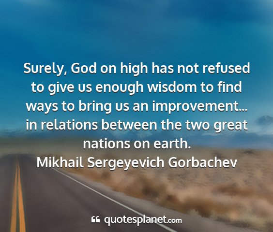 Surely, God on high has not refused to give us enough wisdom to find ways to bring us an improvement... in relations between the two great nations on earth.Mikhail Sergeyevich Gorbachev