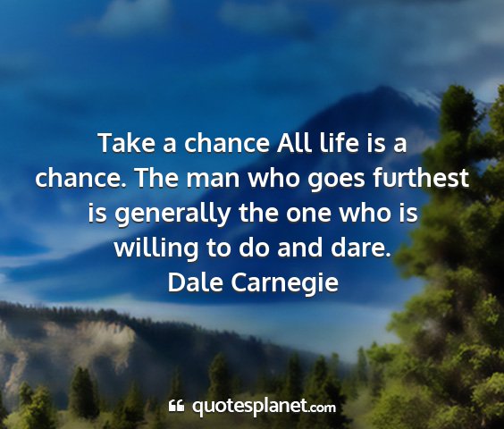 Take a chance All life is a chance. The man who goes furthest is generally the one who is willing to do and dare.Dale Carnegie