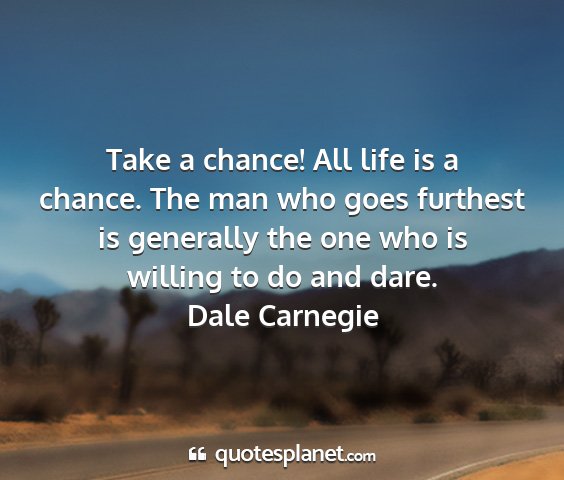 Take a chance! All life is a chance. The man who goes furthest is generally the one who is willing to do and dare.Dale Carnegie