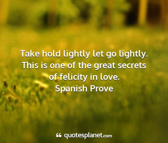 Take hold lightly let go lightly. This is one of the great secrets of felicity in love.