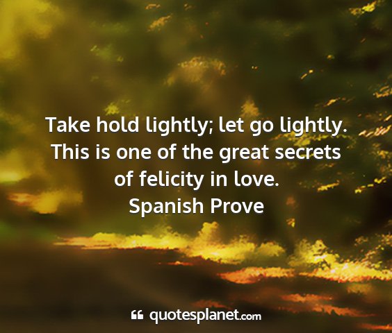 Take hold lightly; let go lightly. This is one of the great secrets of felicity in love.Spanish Prove