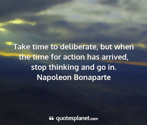 Take time to deliberate, but when the time for action has arrived, stop thinking and go in.Napoleon Bonaparte