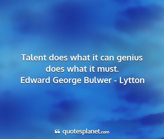 Talent does what it can genius does what it must.