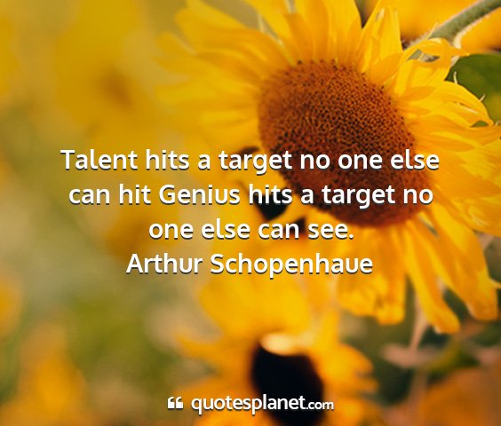 Talent hits a target no one else can hit Genius hits a target no one else can see.