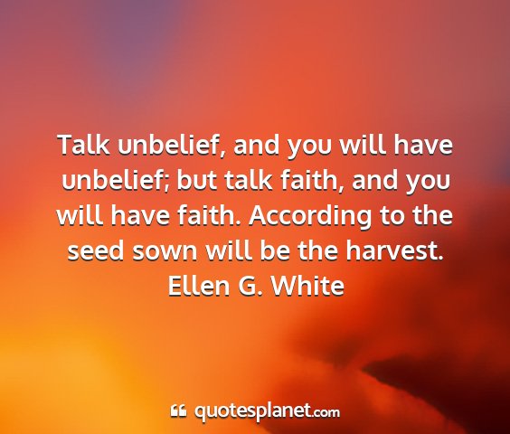 Talk unbelief, and you will have unbelief; but talk faith, and you will have faith. According to the seed sown will be the harvest.Ellen G. White