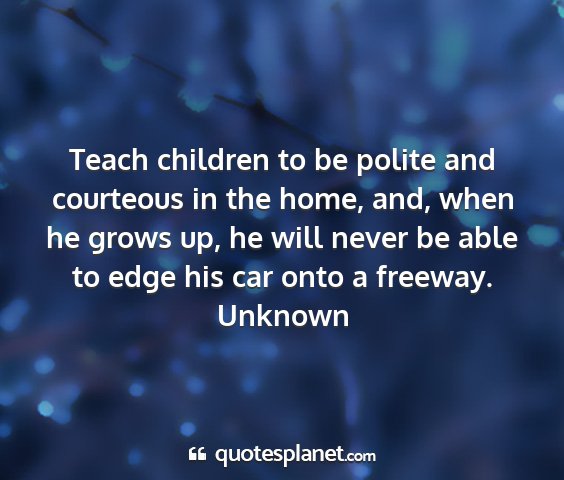 Teach children to be polite and courteous in the home, and, when he grows up, he will never be able to edge his car onto a freeway.Unknown