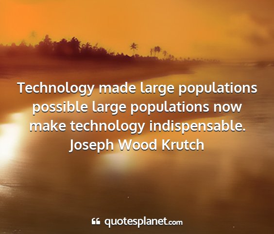 Technology made large populations possible large populations now make technology indispensable.Joseph Wood Krutch