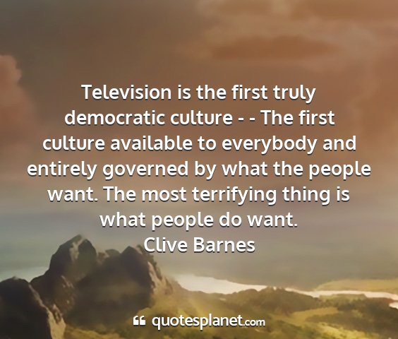Television is the first truly democratic culture - - The first culture available to everybody and entirely governed by what the people want. The most terrifying thing is what people do want.Clive Barnes