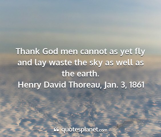 Thank God men cannot as yet fly and lay waste the sky as well as the earth.Henry David Thoreau, Jan. 3, 1861