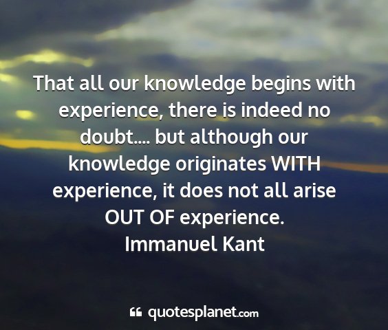 That all our knowledge begins with experience, there is indeed no doubt.... but although our knowledge originates WITH experience, it does not all arise OUT OF experience.Immanuel Kant