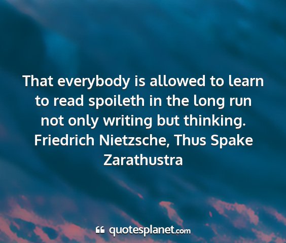 That everybody is allowed to learn to read spoileth in the long run not only writing but thinking.Friedrich Nietzsche, Thus Spake Zarathustra