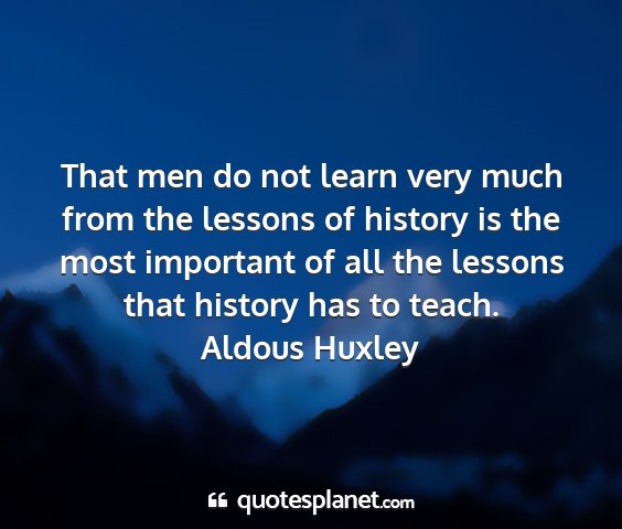 That men do not learn very much from the lessons of history is the most important of all the lessons that history has to teach.Aldous Huxley
