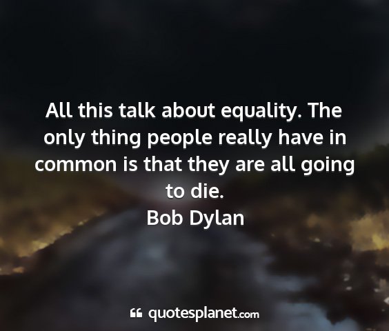 All this talk about equality. The only thing people really have in common is that they are all going to die.Bob Dylan
