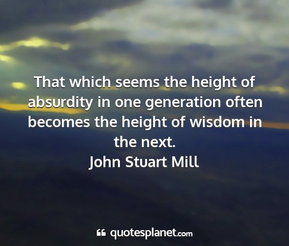 That which seems the height of absurdity in one generation often becomes the height of wisdom in the next.John Stuart Mill