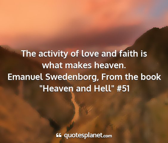 The activity of love and faith is what makes heaven.Emanuel Swedenborg, From the book "Heaven and Hell" #51