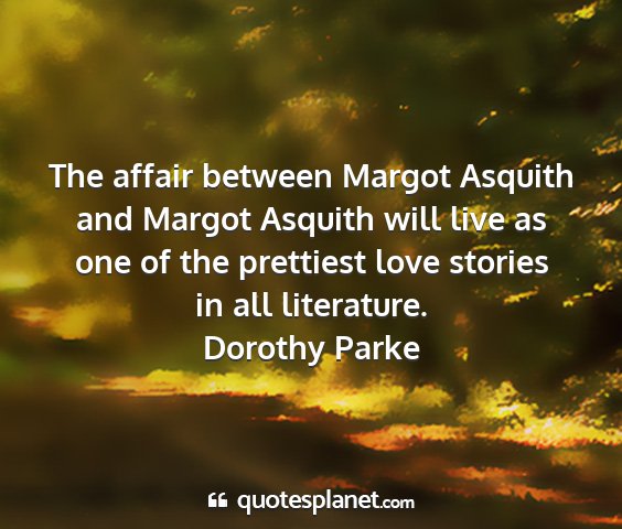 The affair between Margot Asquith and Margot Asquith will live as one of the prettiest love stories in all literature.Dorothy Parke