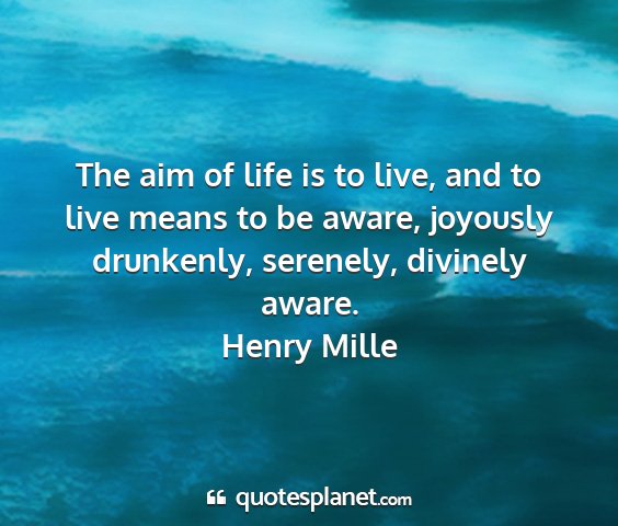 The aim of life is to live, and to live means to be aware, joyously drunkenly, serenely, divinely aware.Henry Mille