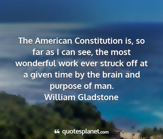 The American Constitution is, so far as I can see, the most wonderful work ever struck off at a given time by the brain and purpose of man.William Gladstone