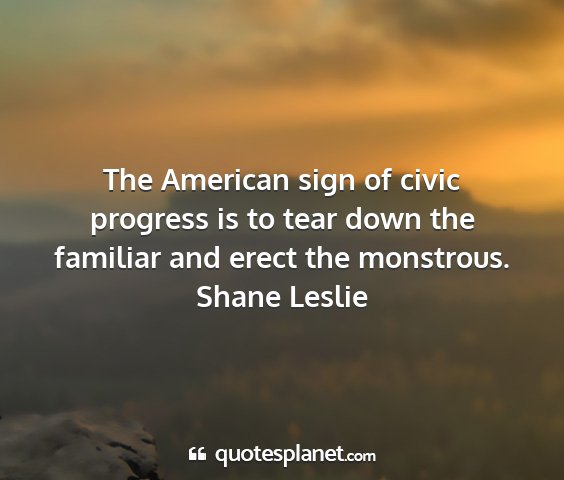 The American sign of civic progress is to tear down the familiar and erect the monstrous.Shane Leslie