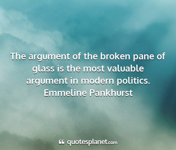 The argument of the broken pane of glass is the most valuable argument in modern politics.Emmeline Pankhurst