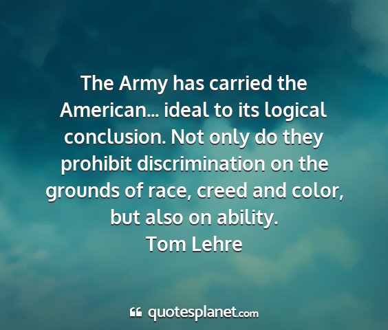 The Army has carried the American... ideal to its logical conclusion. Not only do they prohibit discrimination on the grounds of race, creed and color, but also on ability.Tom Lehre