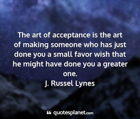 The art of acceptance is the art of making someone who has just done you a small favor wish that he might have done you a greater one.J. Russel Lynes