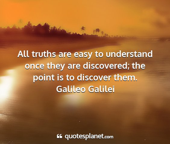 All truths are easy to understand once they are discovered; the point is to discover them.Galileo Galilei