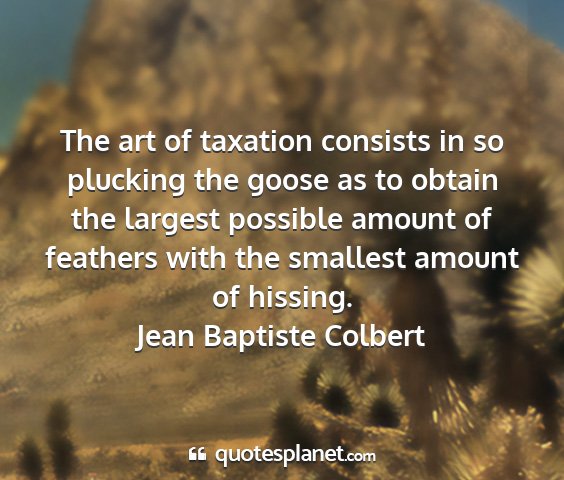 The art of taxation consists in so plucking the goose as to obtain the largest possible amount of feathers with the smallest amount of hissing.Jean Baptiste Colbert
