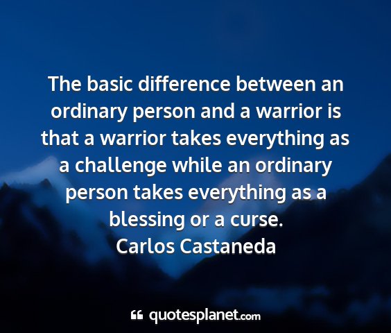 The basic difference between an ordinary person and a warrior is that a warrior takes everything as a challenge while an ordinary person takes everything as a blessing or a curse.Carlos Castaneda
