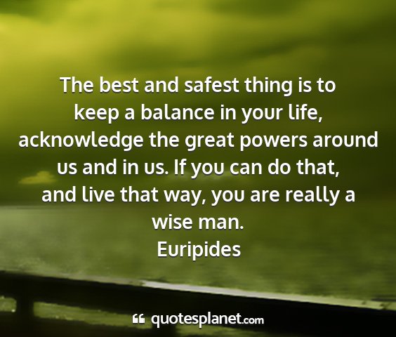 The best and safest thing is to keep a balance in your life, acknowledge the great powers around us and in us. If you can do that, and live that way, you are really a wise man.Euripides