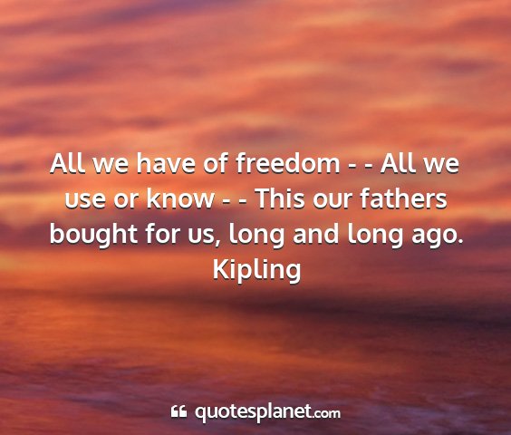 All we have of freedom - - All we use or know - - This our fathers bought for us, long and long ago.Kipling