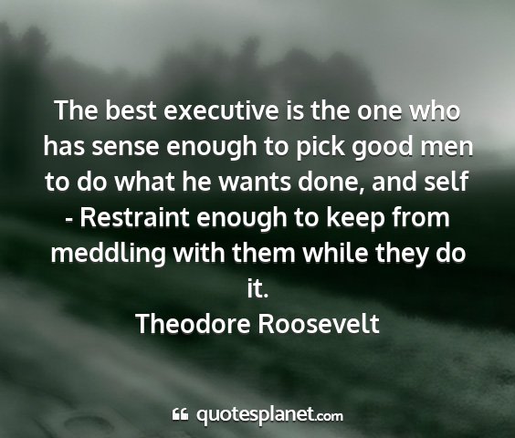 The best executive is the one who has sense enough to pick good men to do what he wants done, and self - Restraint enough to keep from meddling with them while they do it.Theodore Roosevelt