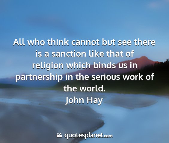 All who think cannot but see there is a sanction like that of religion which binds us in partnership in the serious work of the world.John Hay