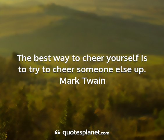 The best way to cheer yourself is to try to cheer someone else up.