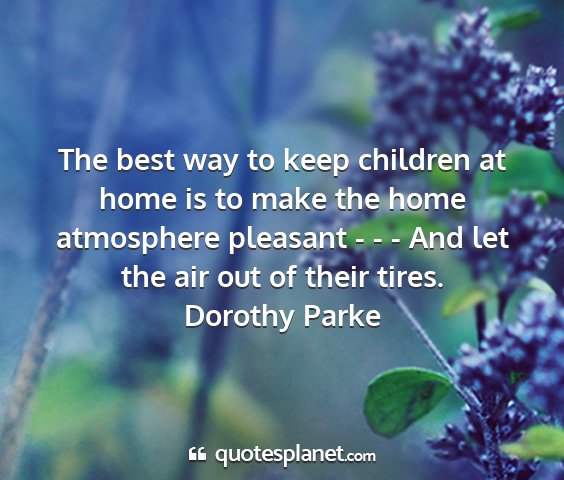 The best way to keep children at home is to make the home atmosphere pleasant - - - And let the air out of their tires.Dorothy Parke
