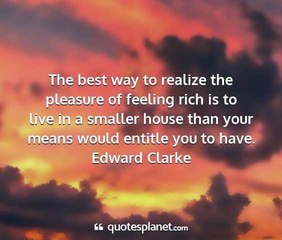 The best way to realize the pleasure of feeling rich is to live in a smaller house than your means would entitle you to have.Edward Clarke