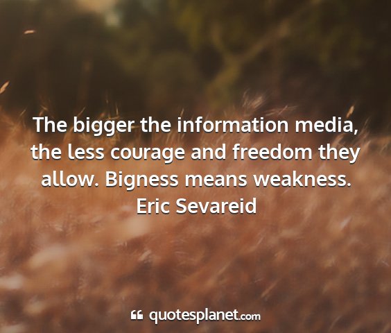 The bigger the information media, the less courage and freedom they allow. Bigness means weakness.Eric Sevareid