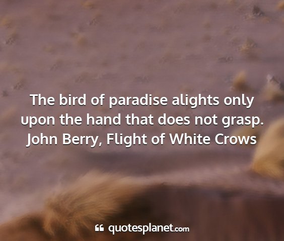 The bird of paradise alights only upon the hand that does not grasp.John Berry, Flight of White Crows
