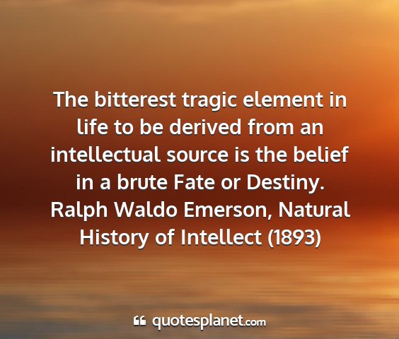 The bitterest tragic element in life to be derived from an intellectual source is the belief in a brute Fate or Destiny.Ralph Waldo Emerson, Natural History of Intellect (1893)