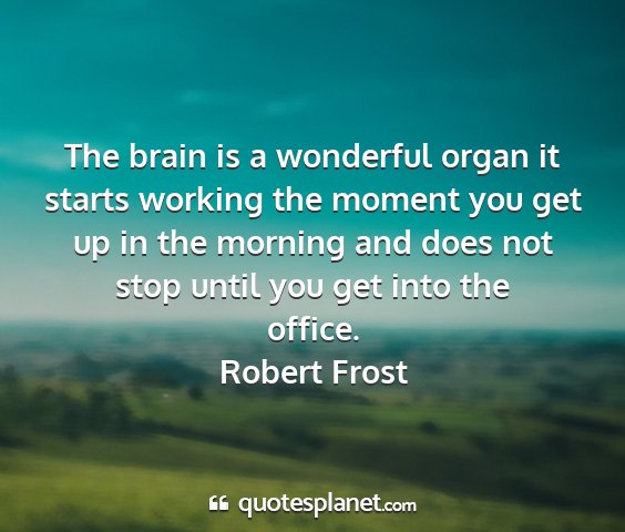 The brain is a wonderful organ it starts working the moment you get up in the morning and does not stop until you get into the office.Robert Frost