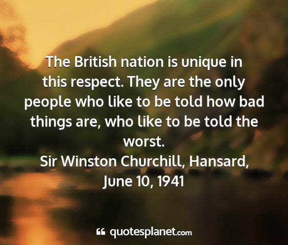 The British nation is unique in this respect. They are the only people who like to be told how bad things are, who like to be told the worst.Sir Winston Churchill, Hansard, June 10, 1941