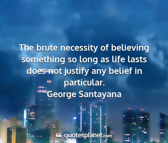 The brute necessity of believing something so long as life lasts does not justify any belief in particular.George Santayana