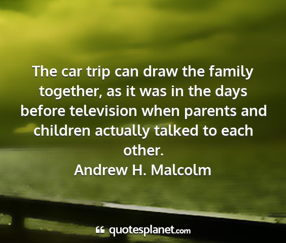The car trip can draw the family together, as it was in the days before television when parents and children actually talked to each other.Andrew H. Malcolm