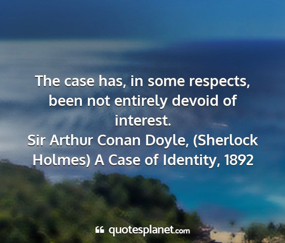 The case has, in some respects, been not entirely devoid of interest.Sir Arthur Conan Doyle, (Sherlock Holmes) A Case of Identity, 1892