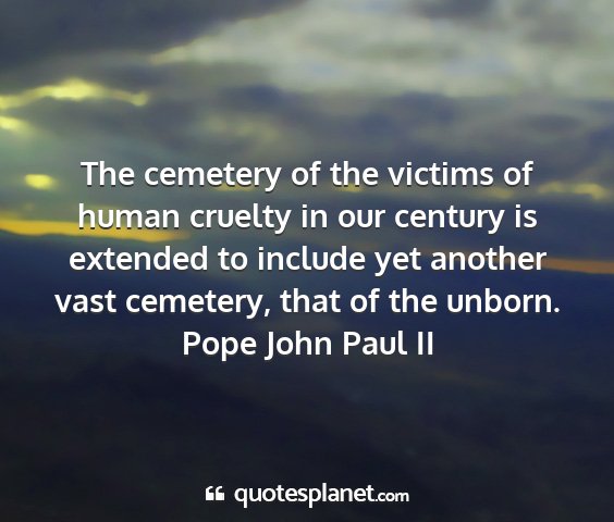 The cemetery of the victims of human cruelty in our century is extended to include yet another vast cemetery, that of the unborn.Pope John Paul II