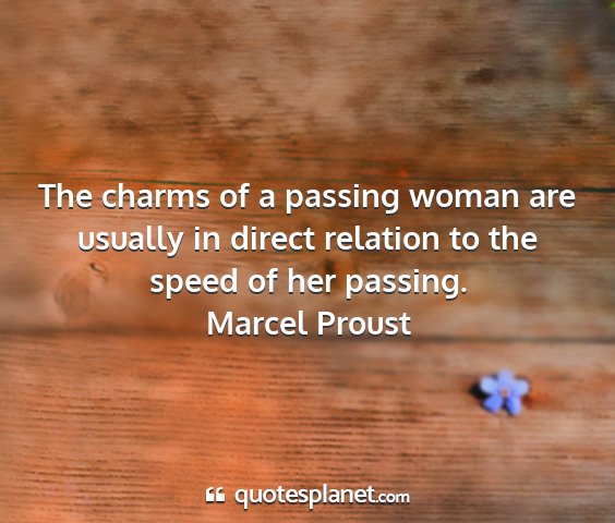 The charms of a passing woman are usually in direct relation to the speed of her passing.Marcel Proust