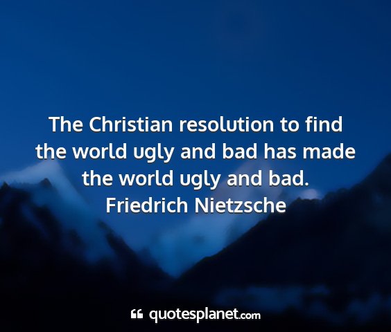 The Christian resolution to find the world ugly and bad has made the world ugly and bad.Friedrich Nietzsche