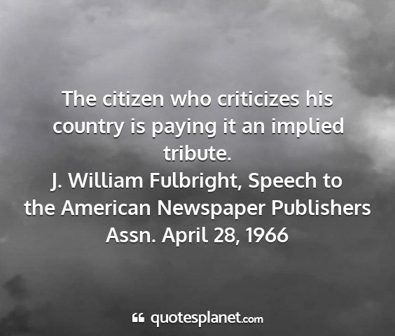 The citizen who criticizes his country is paying it an implied tribute.J. William Fulbright, Speech to the American Newspaper Publishers Assn. April 28, 1966