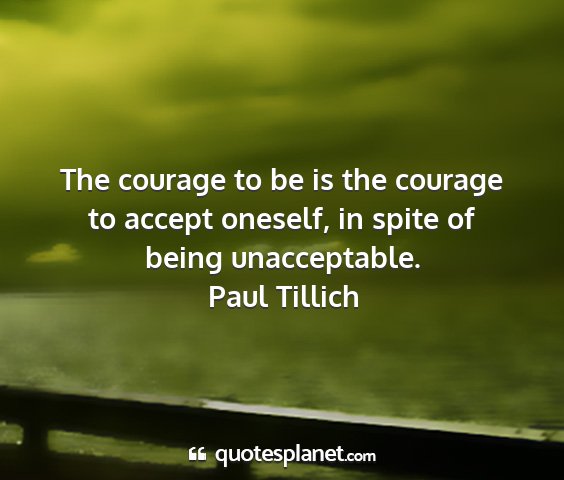 The courage to be is the courage to accept oneself, in spite of being unacceptable.