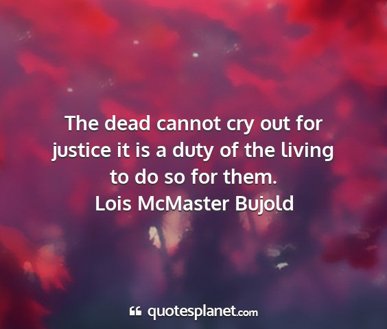 The dead cannot cry out for justice it is a duty of the living to do so for them.Lois McMaster Bujold